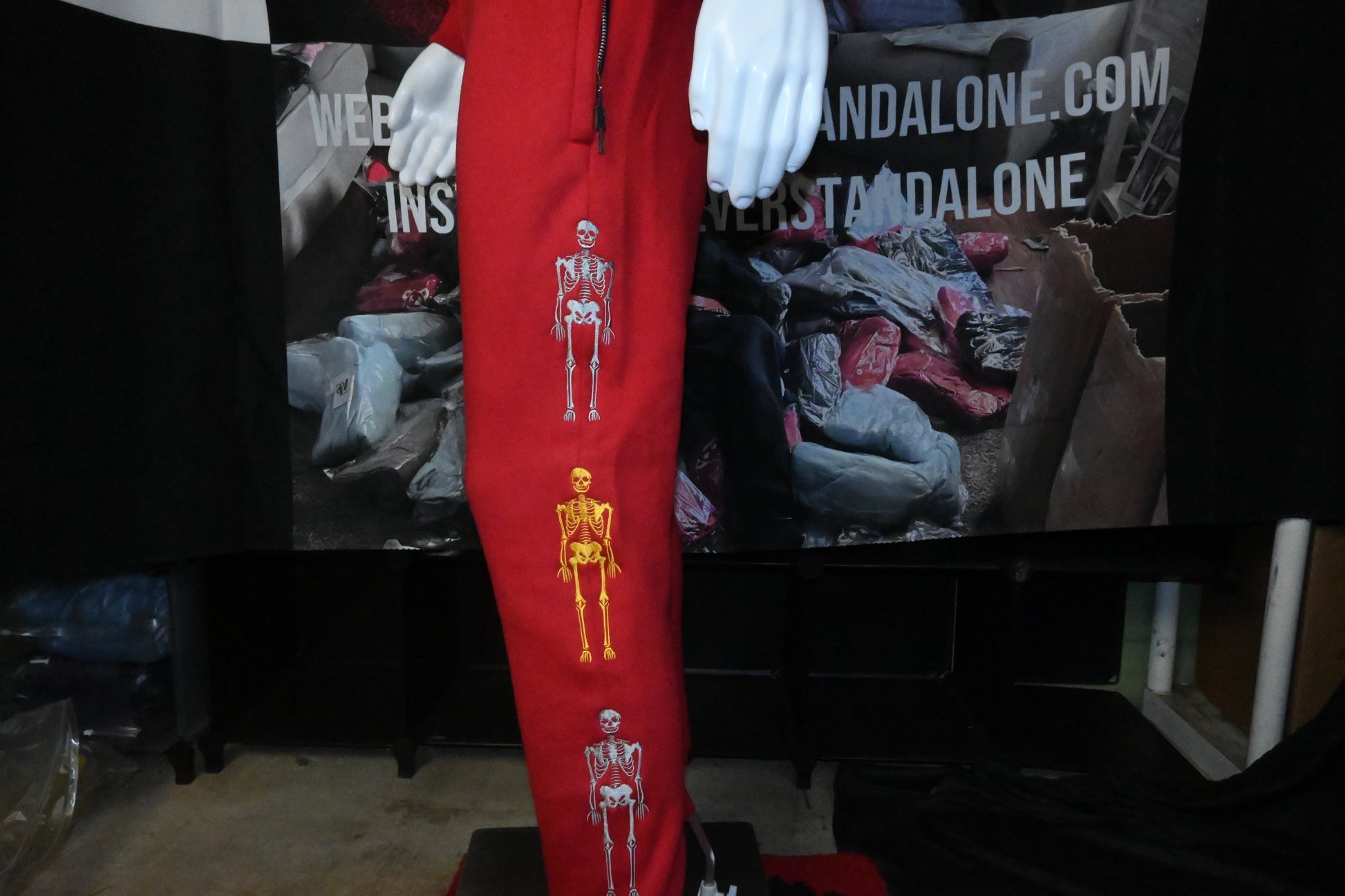 - Detailing: Custom Tag and big skeleton standing alone on the front the back is designed with multiple skeletons and also custom zippers